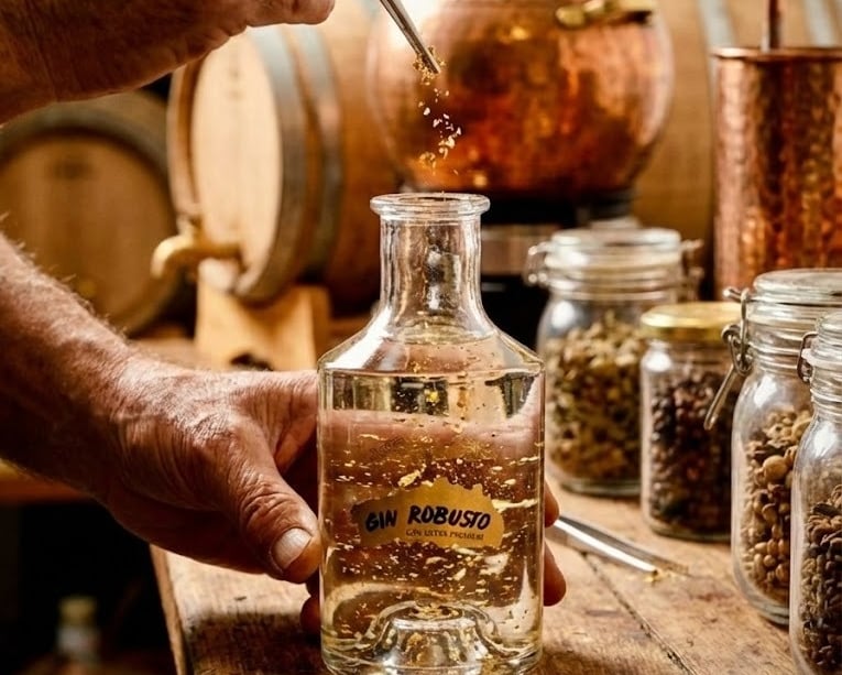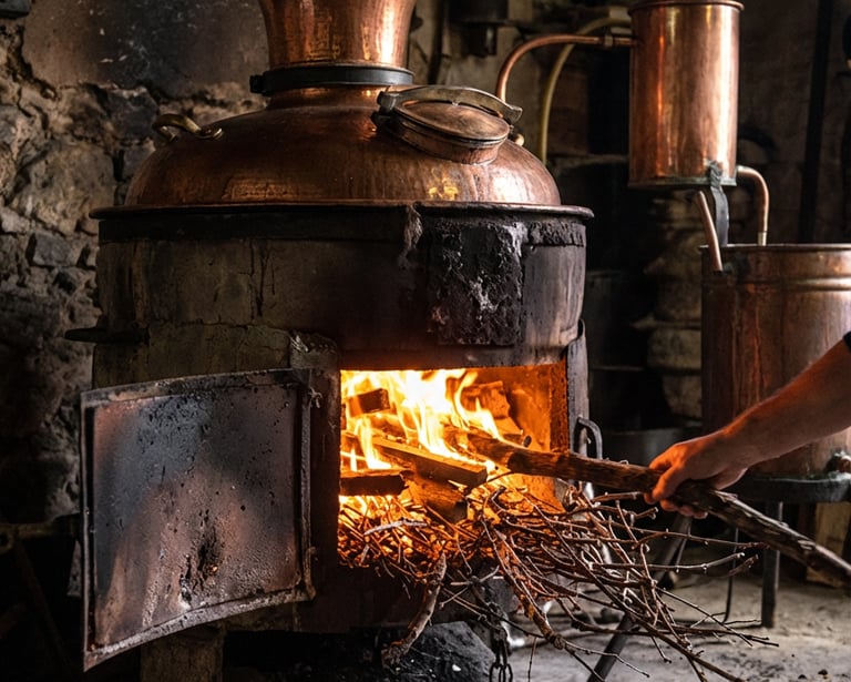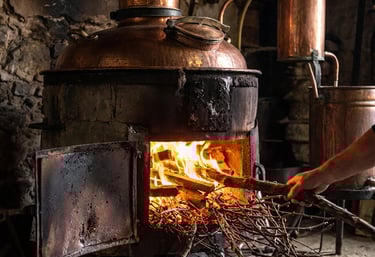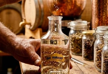 Le Gin Robusto est façonné dans un alambic en cuivre chauffé au feu de bois, une méthode ancestrale qui lui confère une profondeur et une rondeur singulières.